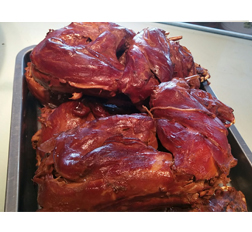 明明熏雞:傳統(tǒng)工藝(鐵鍋熬煮4-5小時),色澤紅潤,肉質(zhì)酥嫩。